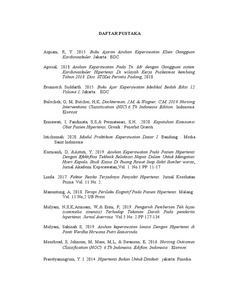 Kurniasih, D, &Astuti, Y, 2019. Asuhan Keperawatan Pada Pasien Hipertensi