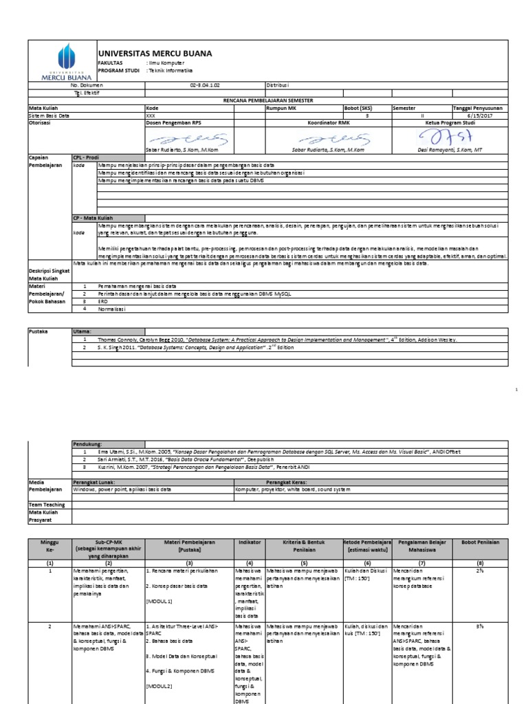 Mata kuliah ini memberikan pemahaman mengenai basis data dan sekaligus pengalaman bagi mahasiswa dalam membangun dan mengelola basis data.