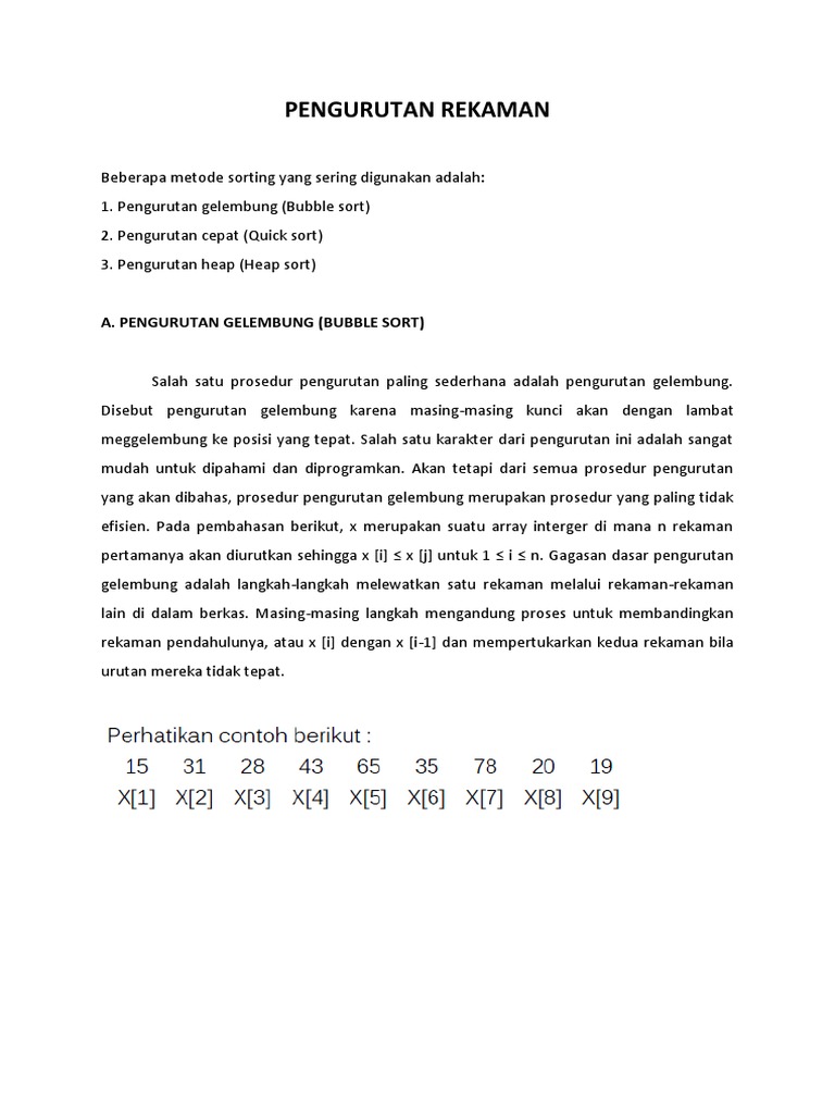 yang akan dibahas, prosedur pengurutan gelembung merupakan prosedur yang paling tidak