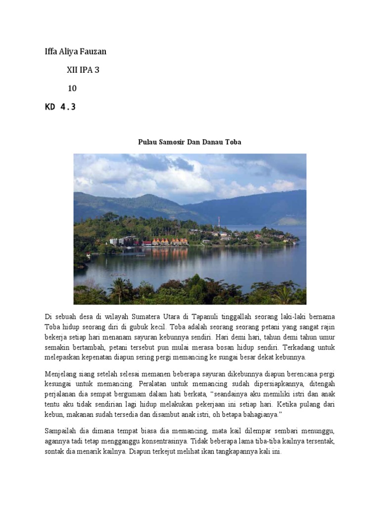 1. Di daerah Tapanuli, Sumatera Utara, hidup seorang pria bernama Toba. Ia hidup dari