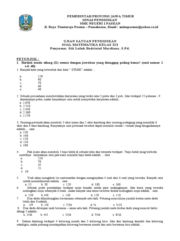 SOAL MATEMATIKA KELAS XII