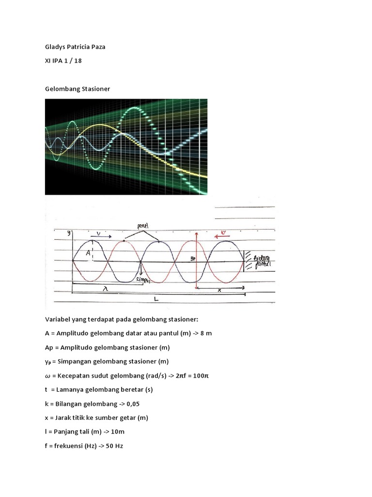 Variabel yang terdapat pada gelombang stasioner: