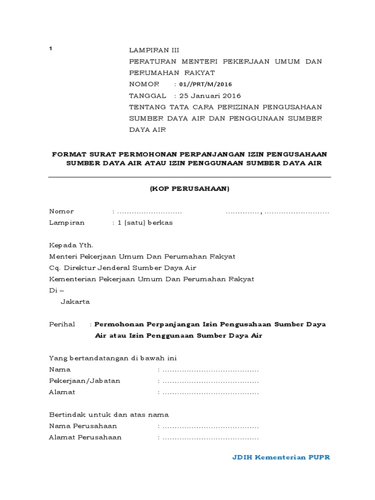 FORM PERPANJANGAN IZIN PENGUSAHAAN SUMBER DAYA AIR ATAU