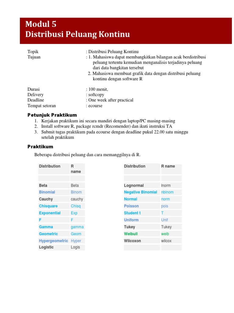 Tujuan : 1. Mahasiswa dapat membangkitkan bilangan acak berdistribusi
