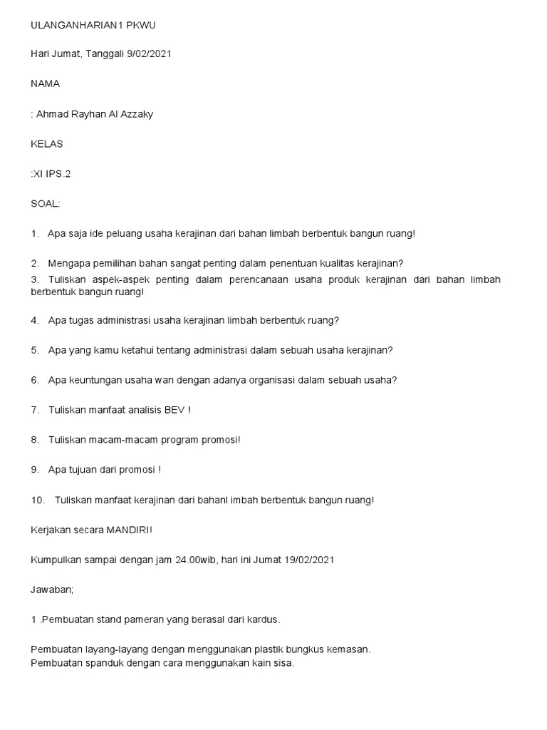 Kumpulkan sampai dengan jam 24.00wib, hari ini Jumat 19/02/2021