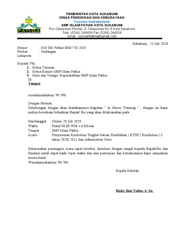 Nomor : 010/ SM- Fathia/ SMI/ VII/ 2020