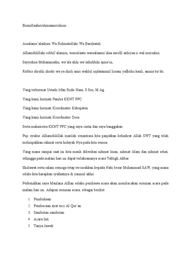 Para hadirin yang di rahmati Allah SWT. Untuk mempersingkat waktu, marilah kita mulai acara
