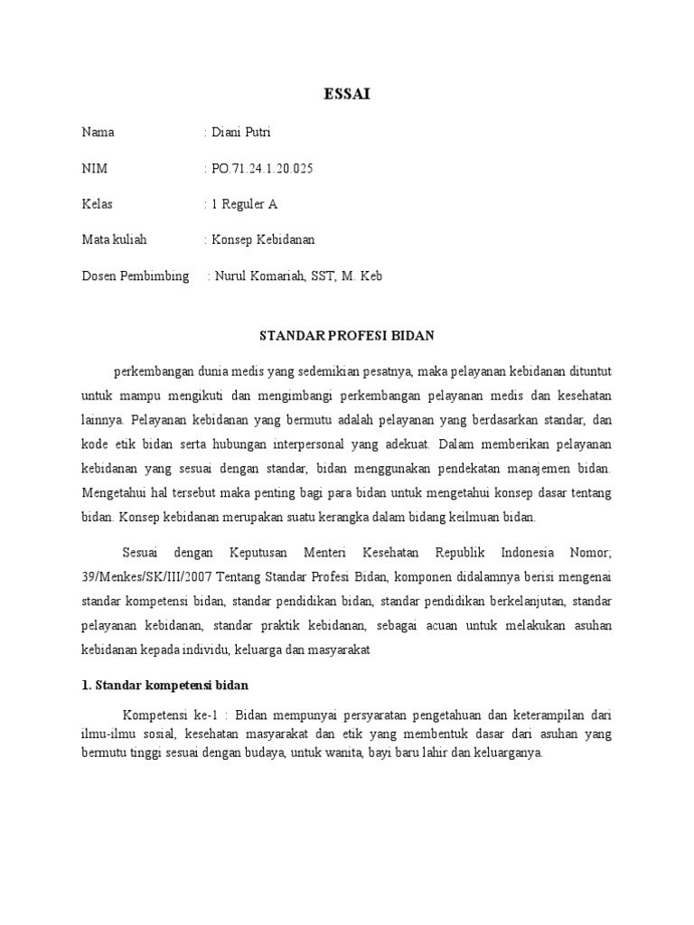 39/Menkes/SK/III/2007 Tentang Standar Profesi Bidan, komponen didalamnya berisi mengenai