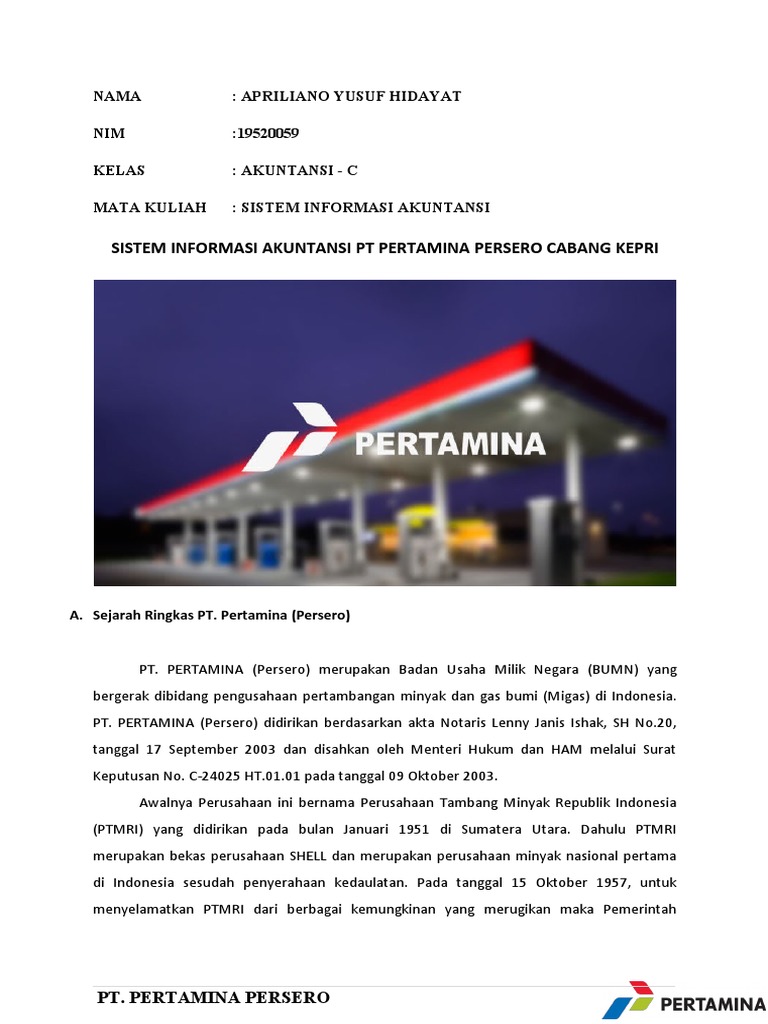 SISTEM INFORMASI AKUNTANSI PT PERTAMINA PERSERO CABANG KEPRI