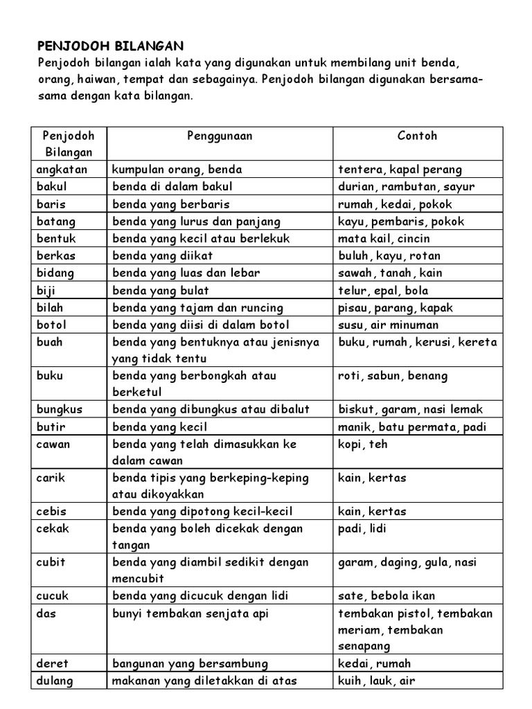orang, haiwan, tempat dan sebagainya. Penjodoh bilangan digunakan bersama-