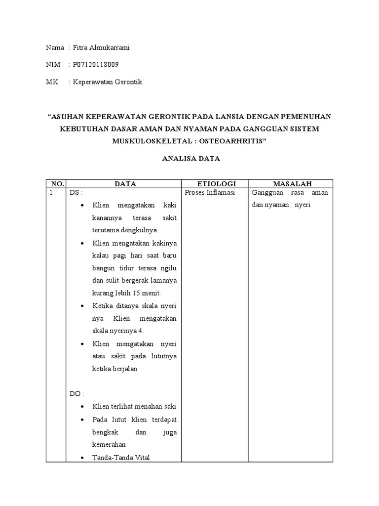 Ny.A mengatakan kaki kanannya terasa sakit aman nyaman dapat teratasi dengan 3. Anjurkan klien untuk mandi