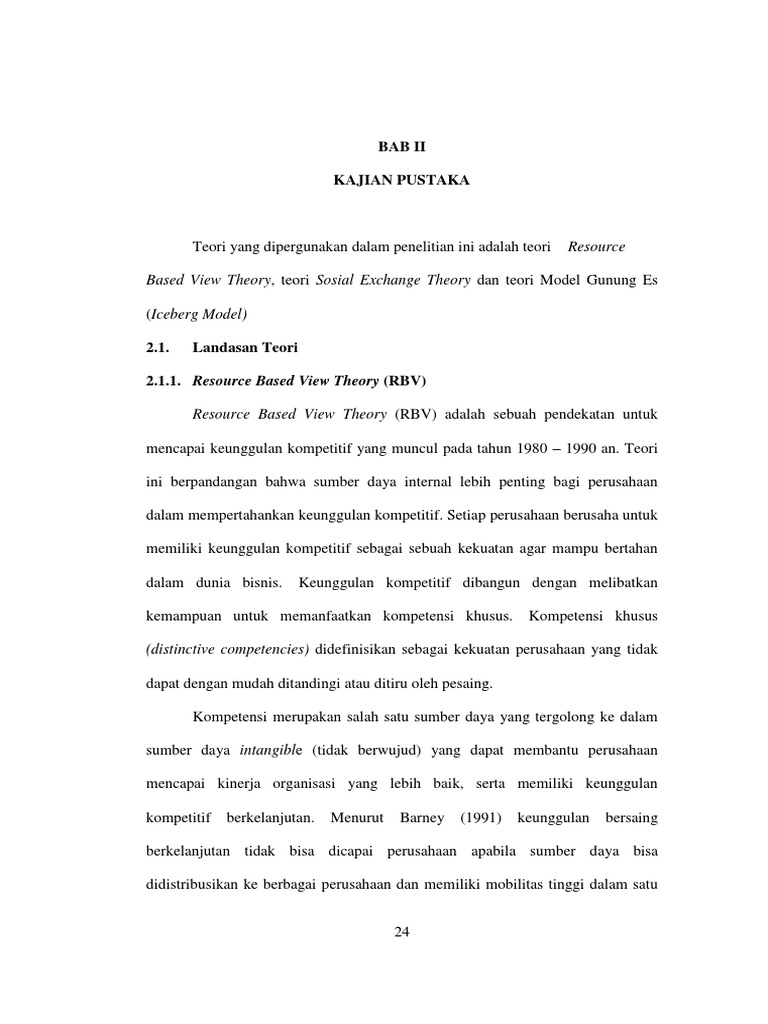 Resource Based View Theory (RBV) adalah sebuah pendekatan untuk