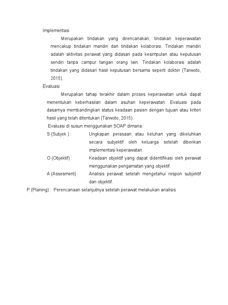 P (Planing) : Perencanaan selanjutnya setelah perawat melakukan analisis