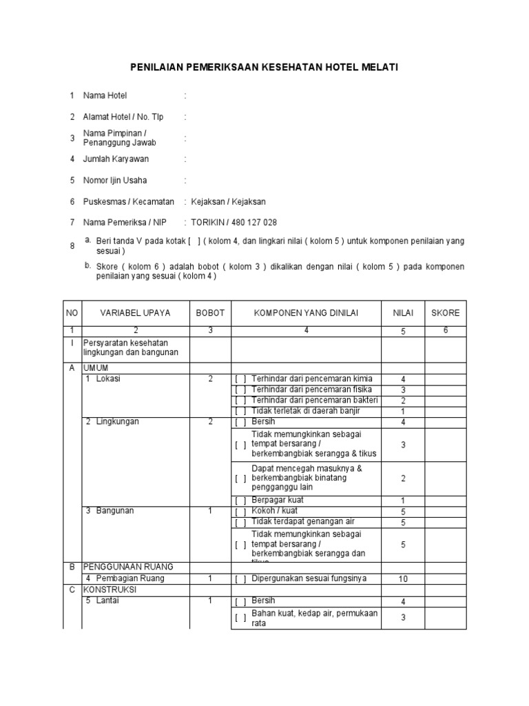 PENILAIAN PEMERIKSAAN KESEHATAN HOTEL MELATI