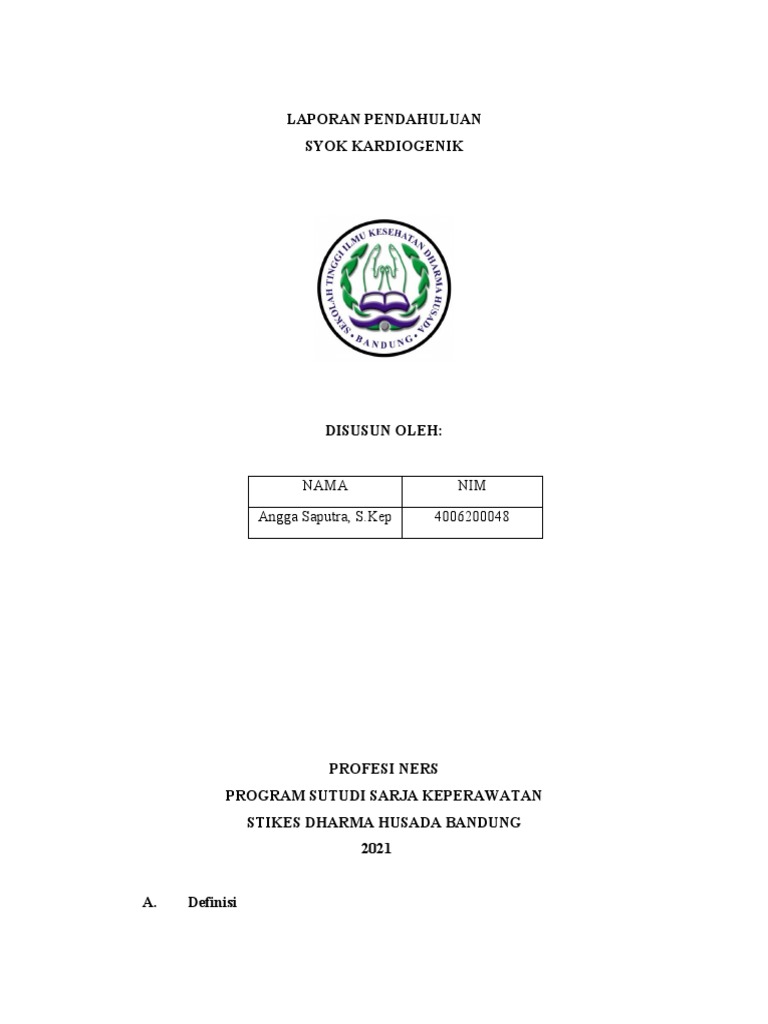 kardiogenik adalah kerusakan otot jantung akibat serangan jantung.