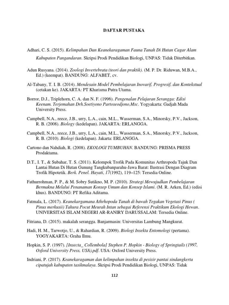 Nurrohman, E., Abdulkadir, R., & Sri, W. (2015). KEANEKARAGAMAN MAKROFAUNA