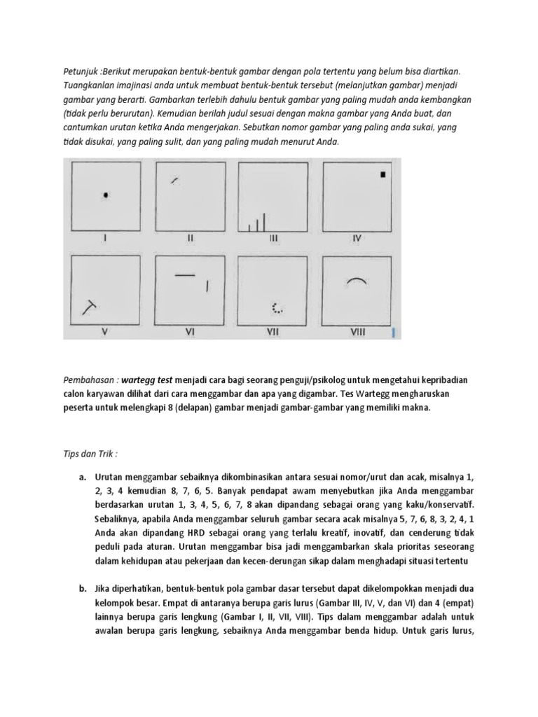 calon karyawan dilihat dari cara menggambar dan apa yang digambar. Tes Wartegg mengharuskan