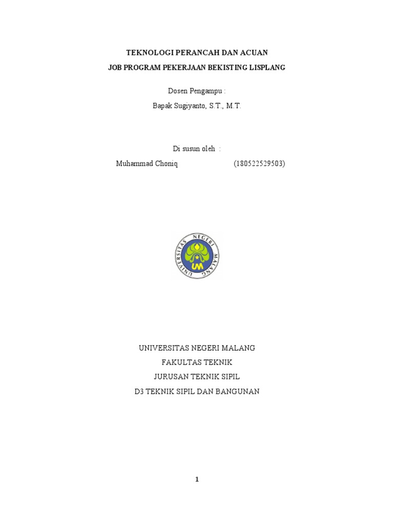 JOB PROGRAM PEKERJAAN BEKISTING LISPLANG