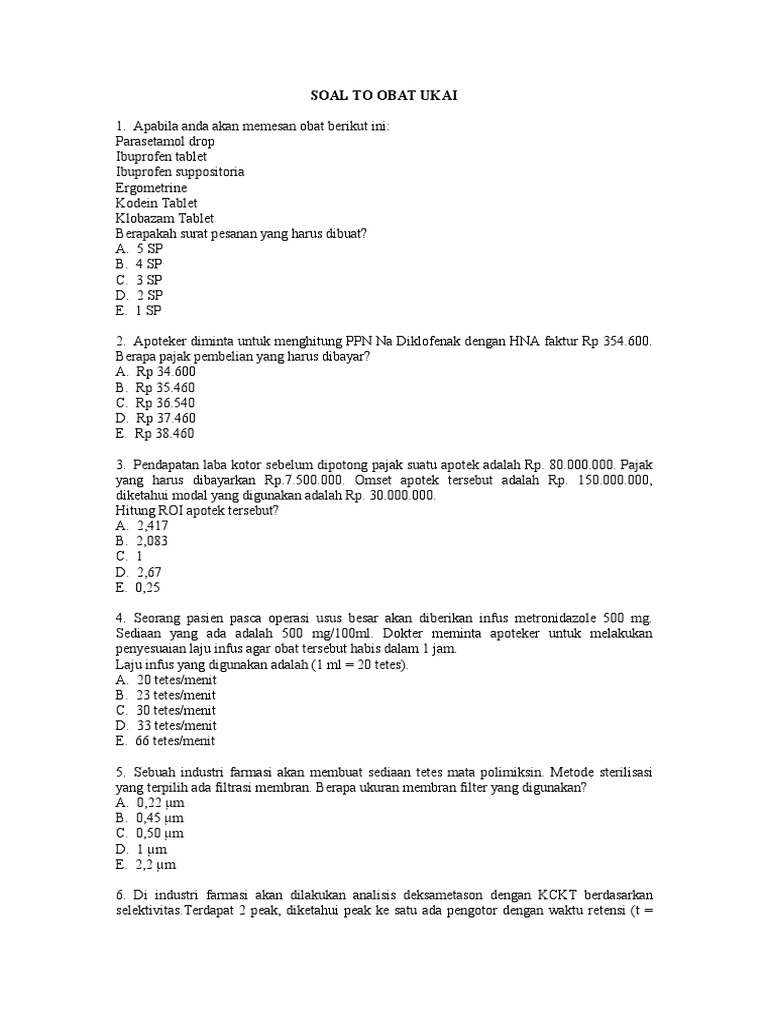 5. Sebuah industri farmasi akan membuat sediaan tetes mata polimiksin. Metode sterilisasi