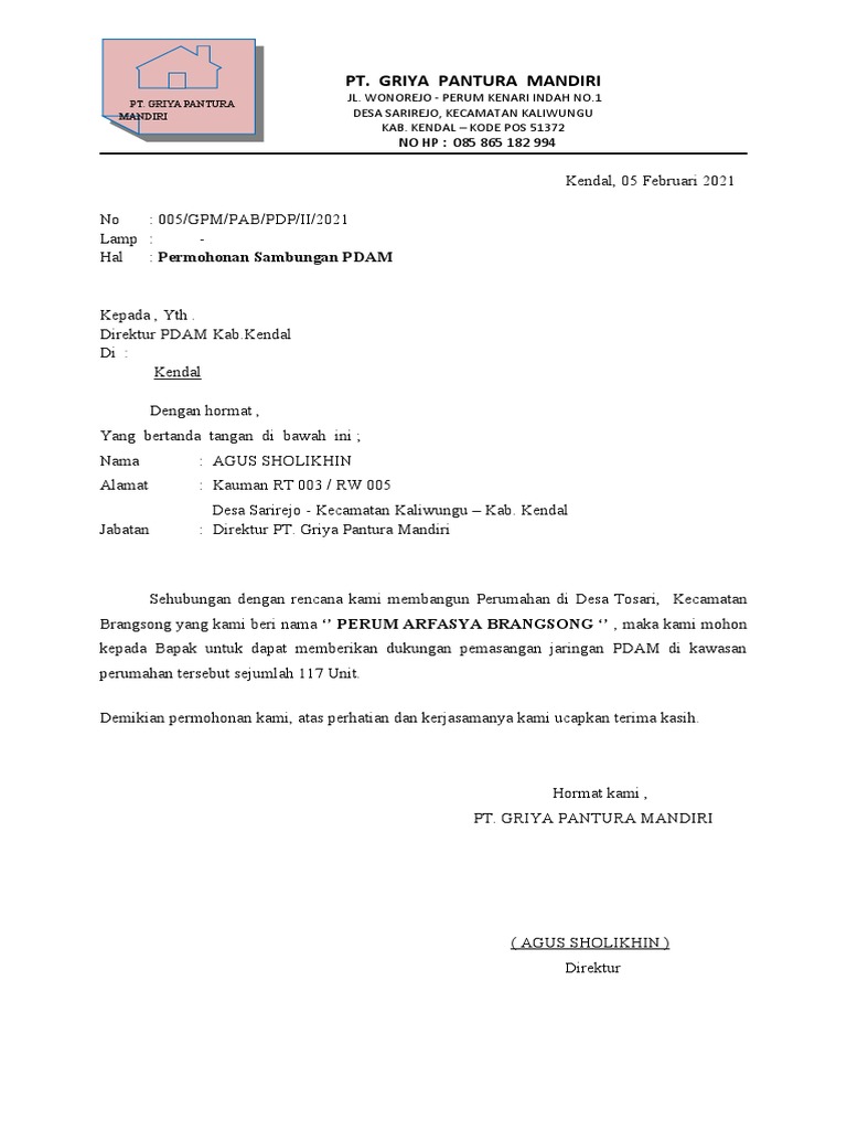 Hal : Permohonan Sambungan PDAM