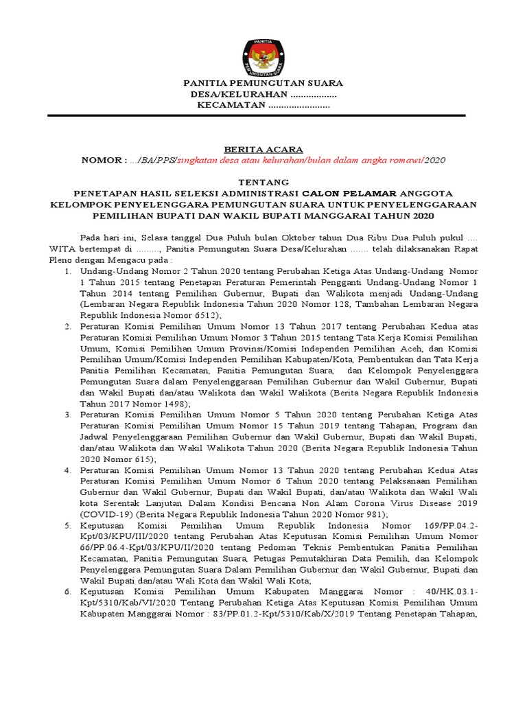 NOMOR : .../BA/PPS/singkatan desa atau kelurahan/bulan dalam angka romawi/2020