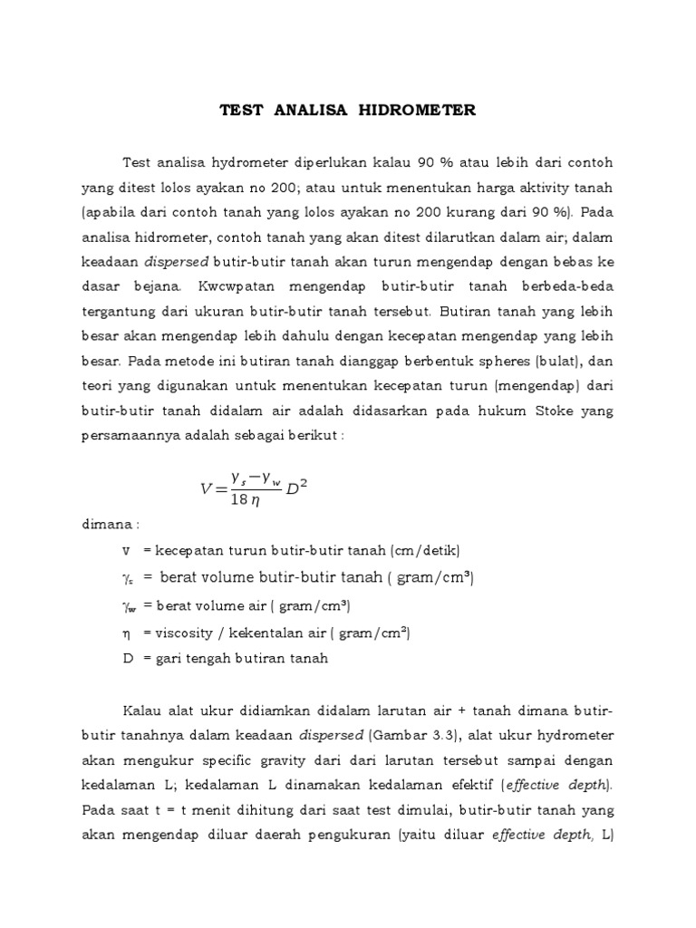 Test analisa hydrometer diperlukan kalau 90 % atau lebih dari contoh