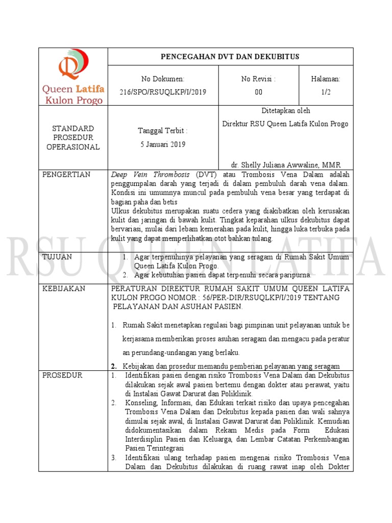 PROSEDUR 1. Identifikasi pasien dengan risiko Trombosis Vena Dalam dan Dekubitus