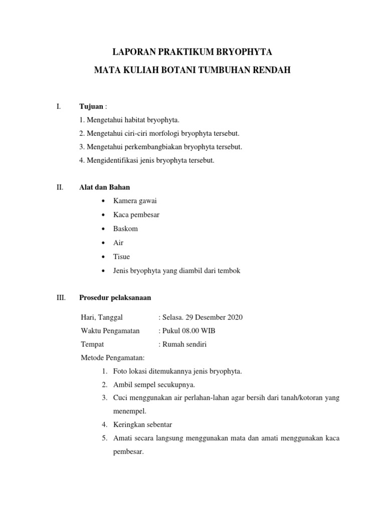 4. Mengidentifikasi jenis bryophyta tersebut.