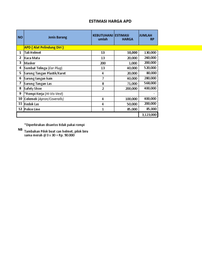 10 Celemek (Apron/Coveralls) 4 100,000 400,000