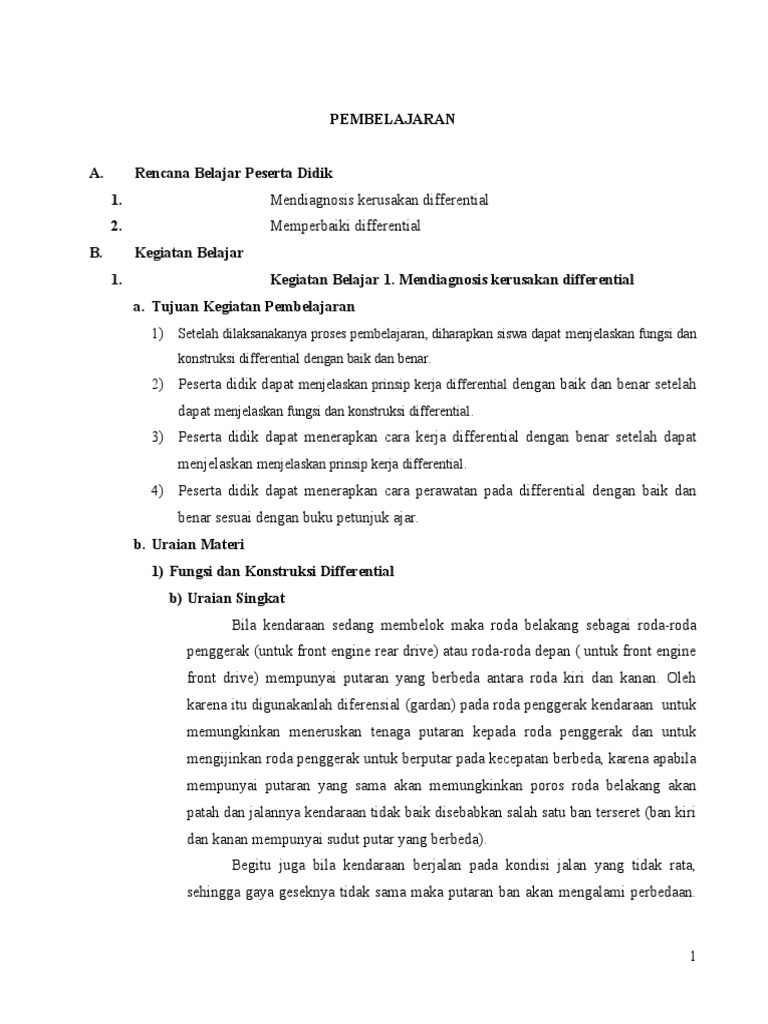 1. Kegiatan Belajar 1. Mendiagnosis kerusakan differential