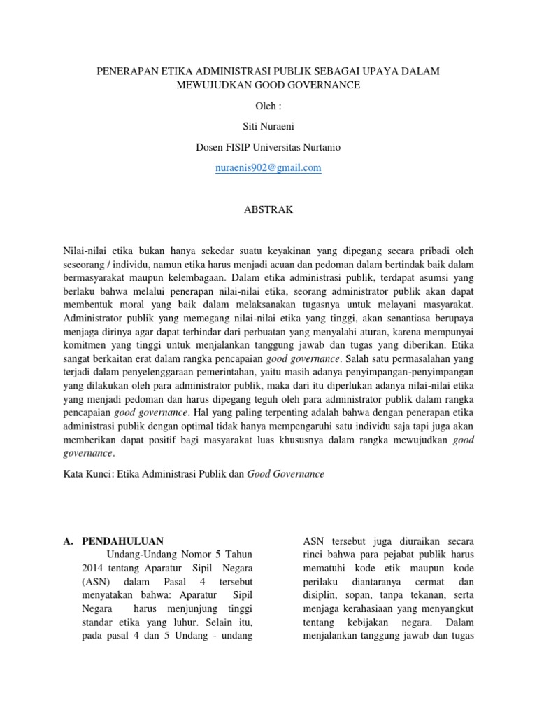 Kata Kunci: Etika Administrasi Publik dan Good Governance