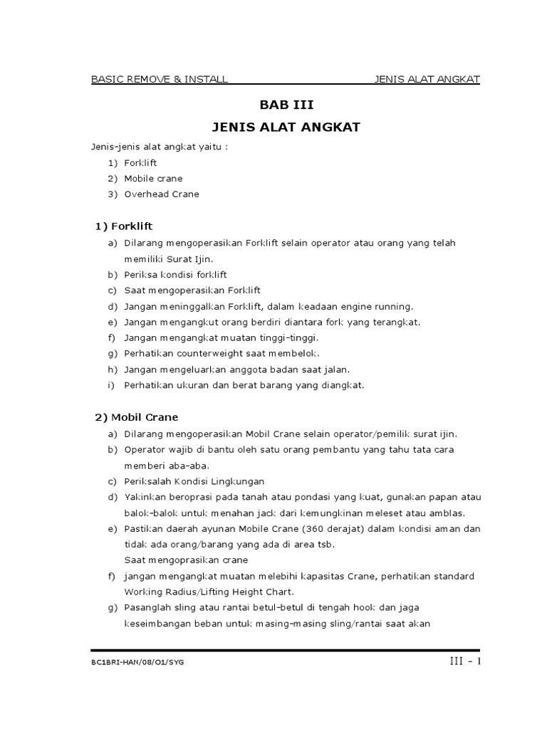 BASIC REMOVE & INSTALL JENIS ALAT ANGKAT