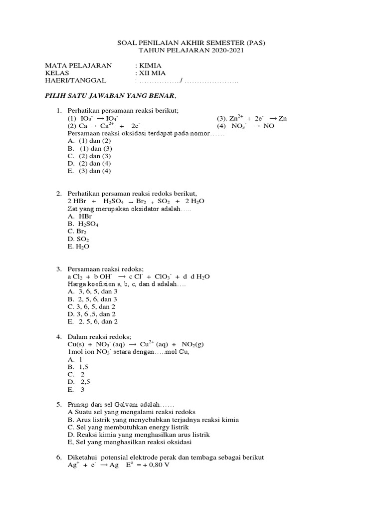 Persamaan reaksi oksidasi terdapat pada nomor……