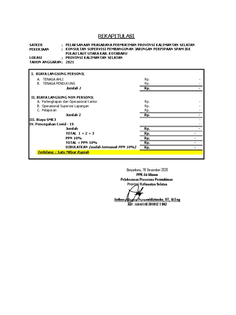 : KONSULTAN SUPERVISI PEMBANGUNAN JARINGAN PERPIPAAN SPAM IKK PULAU LAUT UTARA