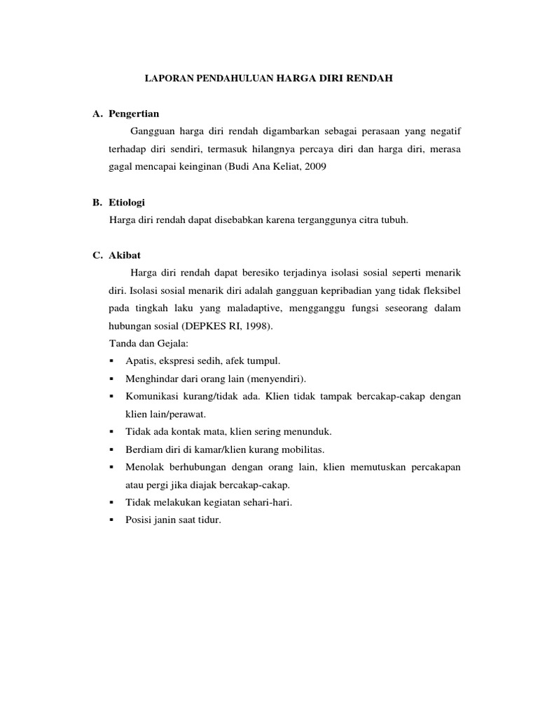 LAPORAN PENDAHULUAN HARGA DIRI RENDAH
