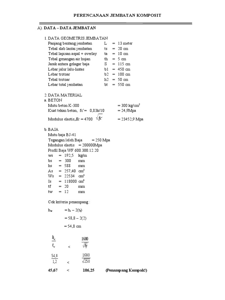 Berdasarkan PPPJR SKB 1987 ( ditinjau 1 m arah memanjang ) adalah sebagai berikut :