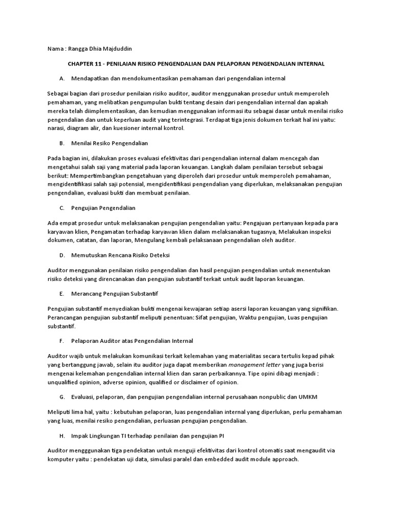 CHAPTER 11 - PENILAIAN RISIKO PENGENDALIAN DAN PELAPORAN PENGENDALIAN INTERNAL