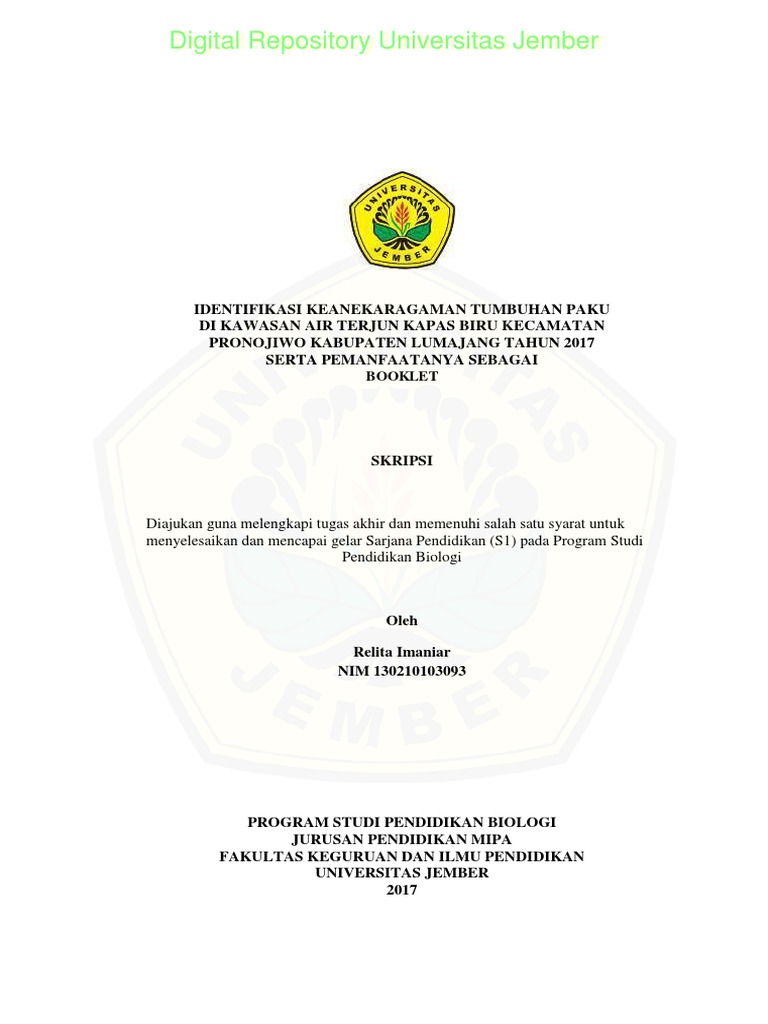 Skripsi Berjudul ―Identifikasi Keanekaragaman Tumbuhan Paku Di Kawasan Air