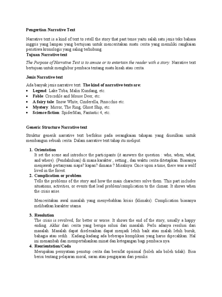 Narrative text is a kind of text to retell the story that past tense yaitu salah satu jenis teks bahasa