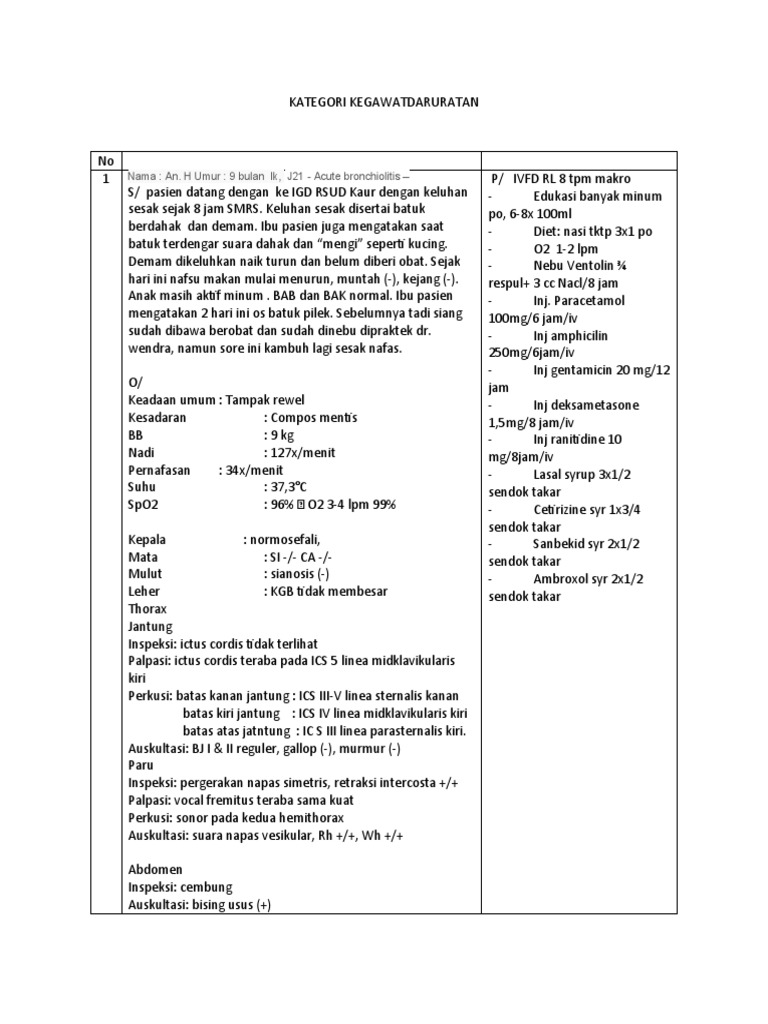 1 Nama : An. H Umur : 9 bulan lk, J21 - Acute bronchiolitis – P/ IVFD RL 8 tpm makro