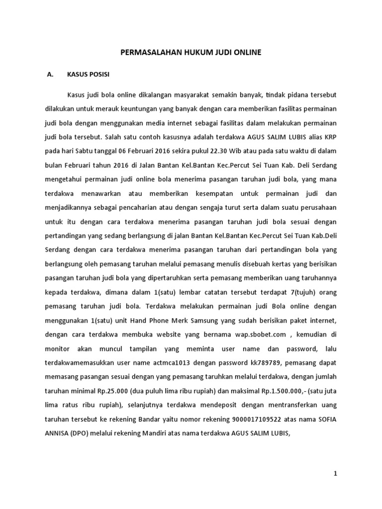 judi online sebagaimana di jelaskan dalam kasus posisi sebelumnya.