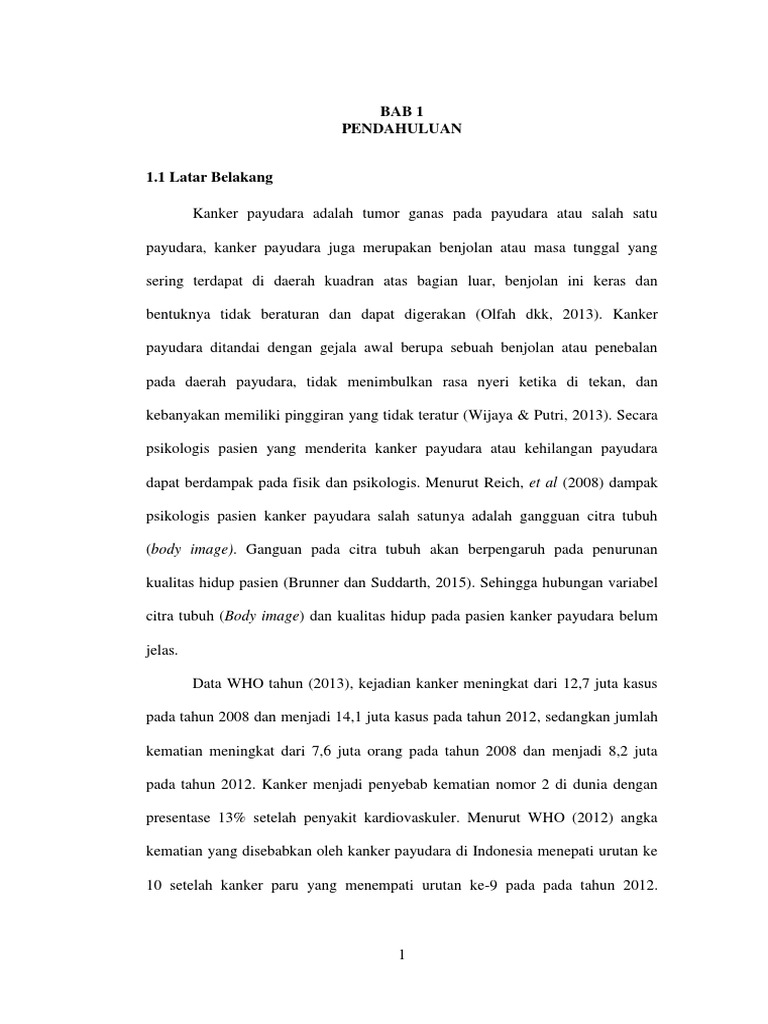 1.3.2.1 Mengidentifikasi citra tubuh (body image) pasien kanker payudara.