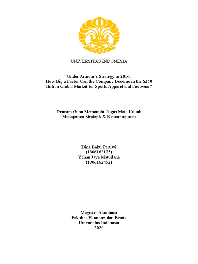 Judul Tugas : Under Armour’s Strategy in 2016: