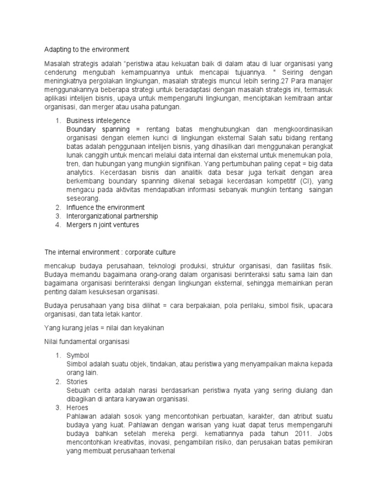 mencakup budaya perusahaan, teknologi produksi, struktur organisasi, dan fasilitas fisik.