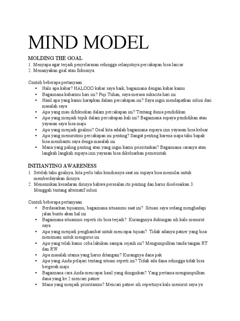 1. Setelah dia menemukan kesadarannya maka kita menggali proses agar bergerak maju 2.