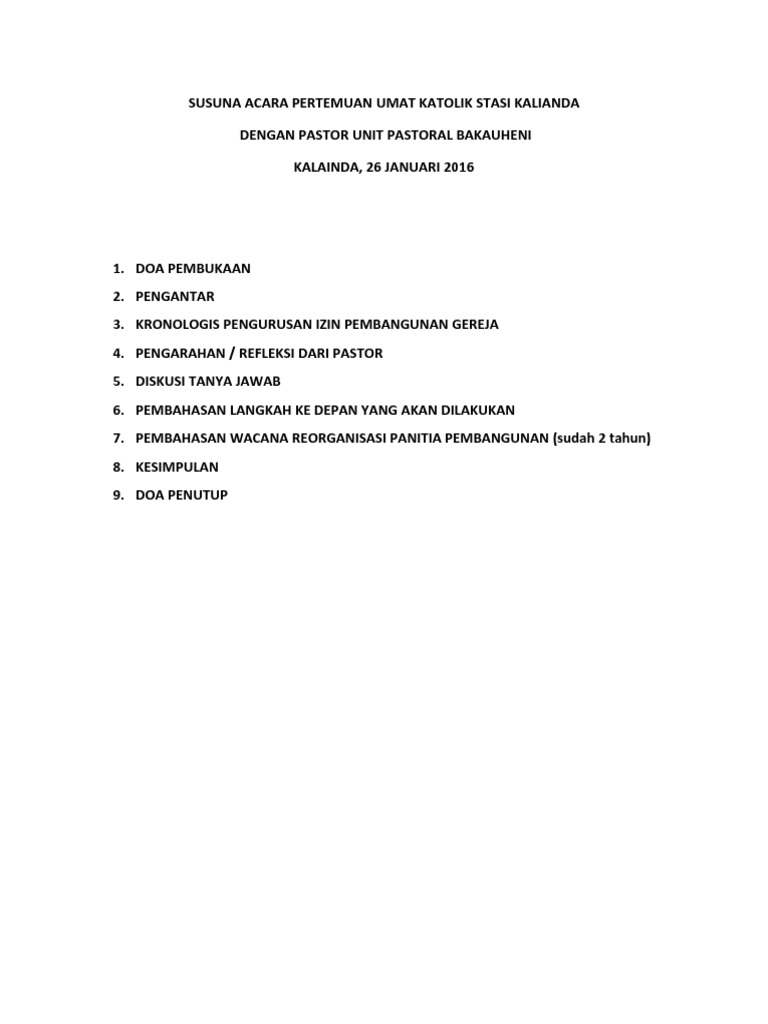 SUSUNA ACARA PERTEMUAN UMAT KATOLIK STASI KALIANDA