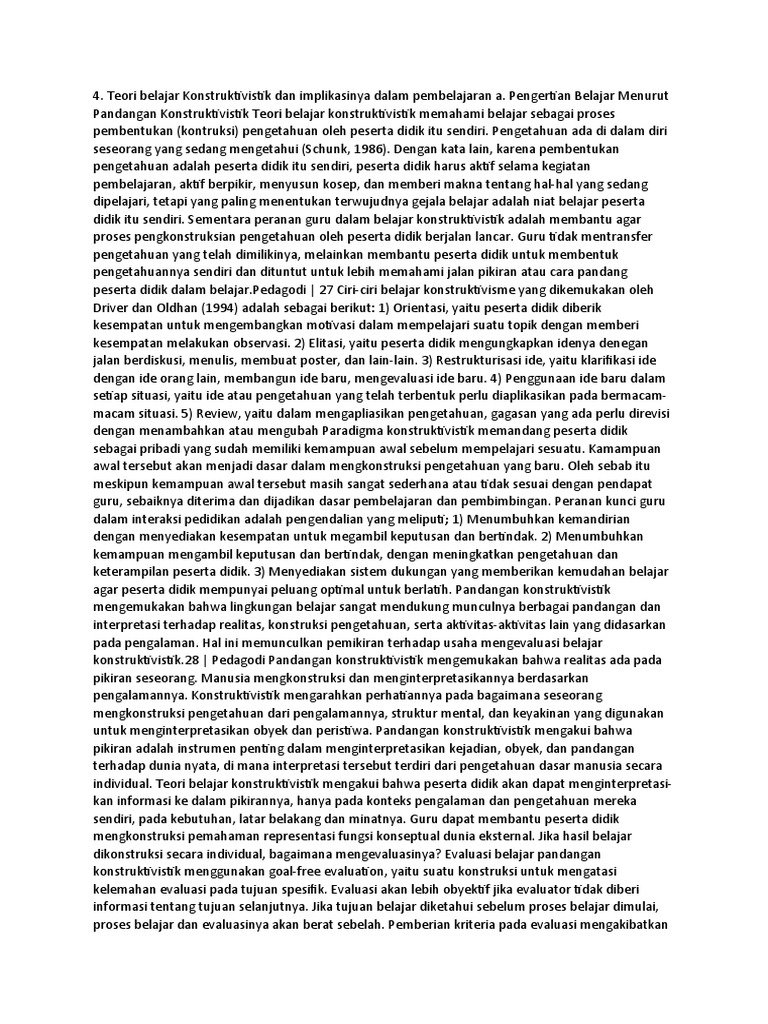 4. Teori belajar Konstruktivistik dan implikasinya dalam pembelajaran a.