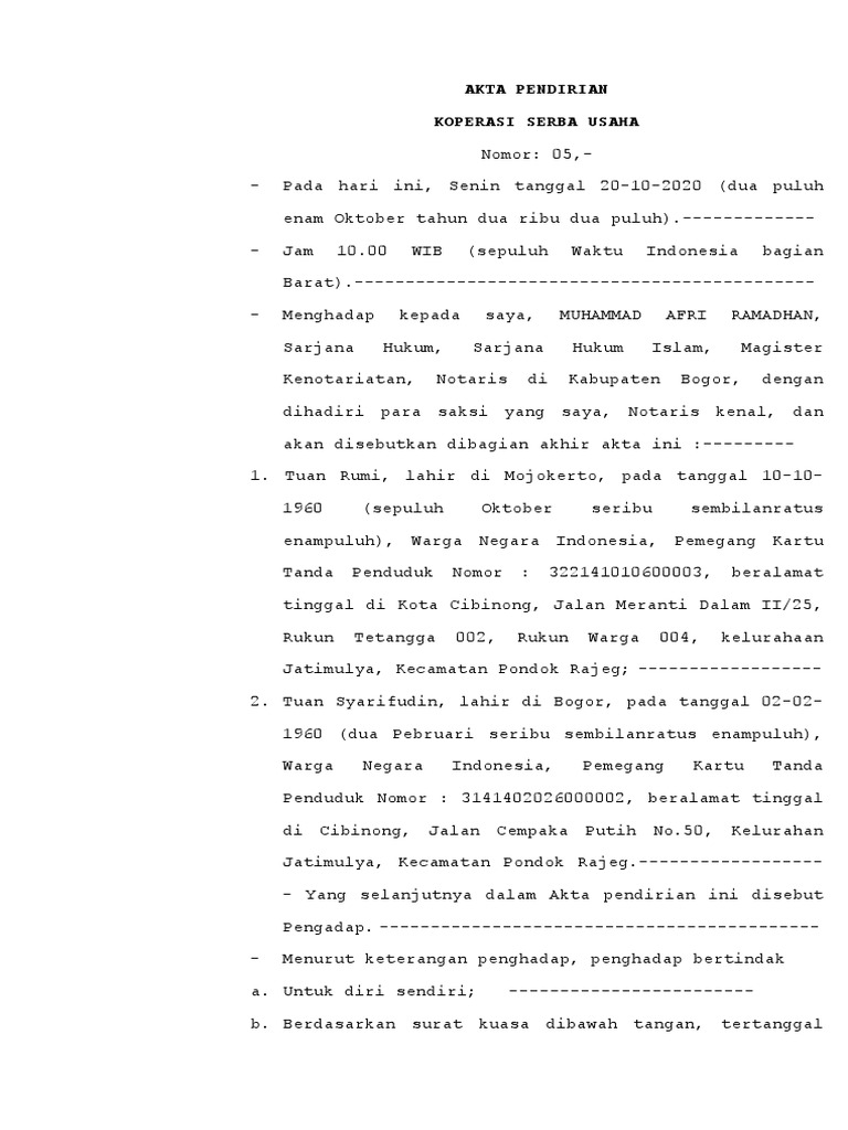 - Yang selanjutnya dalam Akta pendirian ini disebut