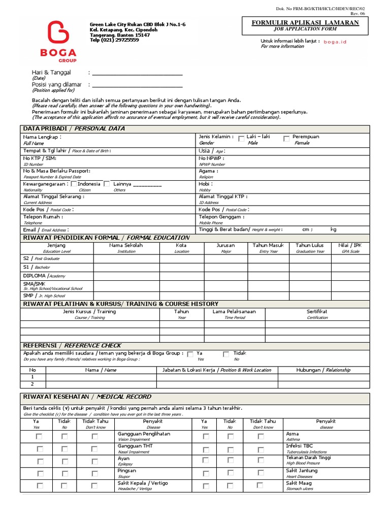 Penerimaan formulir ini bukanlah jaminan penerimaan sebagai karyawan, merupakan bahan pertimbangan seperlunya.