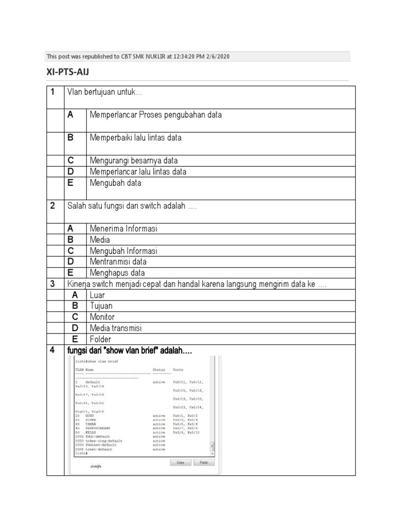 13 Agar computer berkominikasi pada vlan yang sama setiap computer harus memiliki